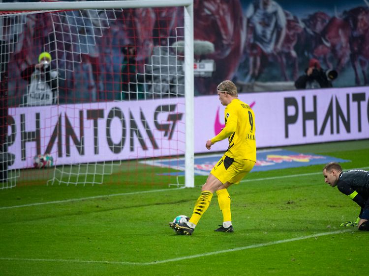 65. Minute: Einmal die gewaltige Kraft des Erling Haaland spüren, das durfte gerade das Leipziger Tor. Allerdings so, dass der Ball vom Gehäuse zurück ins Spielfeld flog, nein, geschleudert wurde. Linke Klebe, Gulacsi noch dran, Latte, kein Tor. Aber Dortmund mit klaren Vorteilen. Fast hätte Leipzig erneut anstoßen müssen.