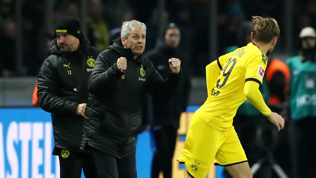 Coach, Mannschaft und Fans feiern als hätten sie ein Endspiel gewonnen: Fußball-Bundesligist Borussia Dortmund gewinnt bei Hertha BSC drei Punkte. Für Trainer Lucien Favre bedeutet das, dass er seinen Job behält. Das war es aber auch schon mit den guten Nachrichten.