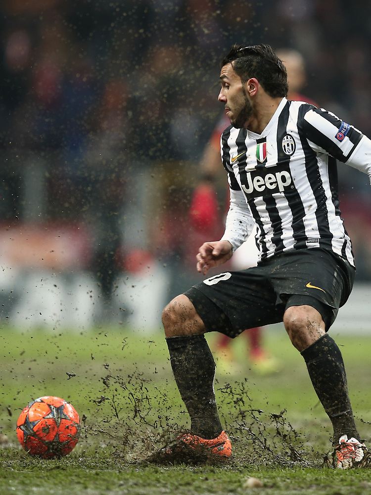 Die Partie war am Dienstagabend gestoppt worden, weil der komplette Rasen mit Schnee bedeckt war. An Fußball erinnerte auch am Tag danach nur wenig: Das Spielfeld der Arena war zwar vom gröbsten Schnee geräumt worden, dafür durchzogen tiefe Furchen den Rasen - oder was davon übriggeblieben war. Besonders im Mittelfeld blieb der Ball immer wieder bei Dribblings liegen, an gepflegtes Kombinationsspiel war für beide Teams bei leichtem Schneefall überhaupt nicht zu denken. Nach dem Halbzeitpfiff beschwerten sich Galatasarays Starstürmer Didier Drogba und Juve-Coach Antonio Conte lautstark bei Schiedsrichter Pedro Proença über die Bedingungen. Angesichts der Achtelfinal-Auslosung am Montag dürfte aber auch der Europäischen Fußball-Union Uefa an einem schnellen Ende der Gruppenphase gelegen haben.