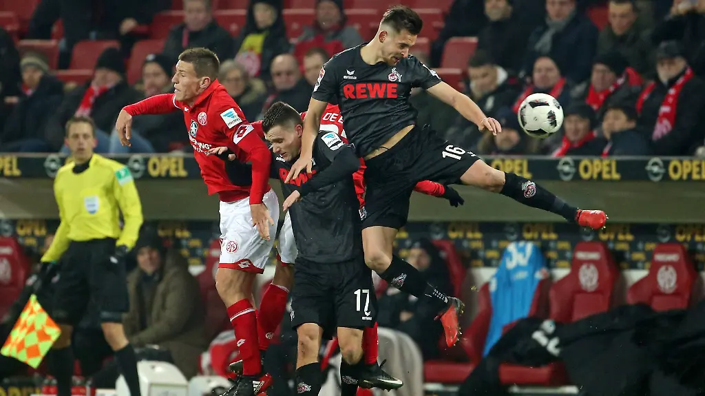 Dabei war für beide Teams die Ausgangsposition klar - den Anschluss an die Europa-League-Plätze zu halten. Dies war der Partie aber nur zu Beginn anzumerken. In einer tempo- und abwechslungsreichen Anfangsphase traten die Gäste aus Köln zunächst deutlich selbstsicherer auf und hatten auch die erste gefährliche Torszene. Nach einem Pass von Konstantin Rausch kam Anthony Modeste etwas zu spät, anschließend lenkte Mainz-Keeper Jonas Lössl eine Rausch-Flanke über die Latte.