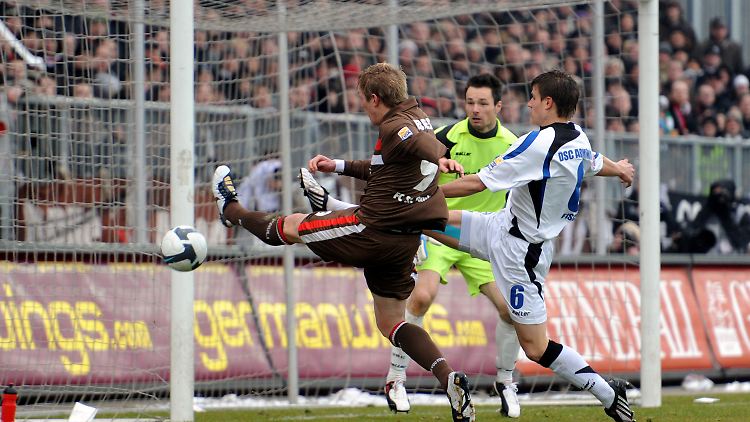 St. Paulis Marius Ebbers scheitert vor dem Bielefelder Tor. Auch deshalb reichte den Arminen ein Tor zum Sieg.