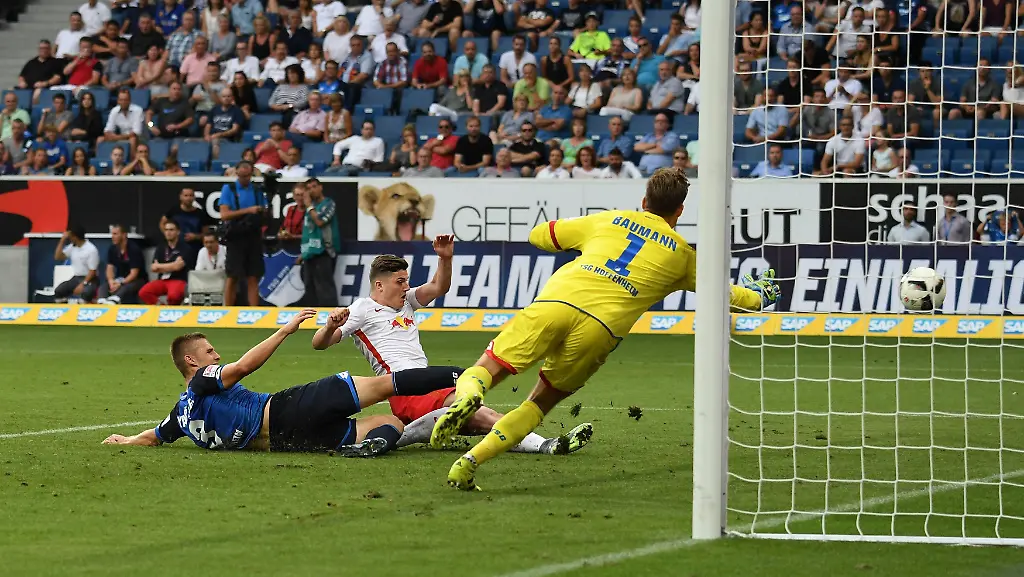 So auch nach einer halben Stunde, als Yussuf Poulsen frei zum Kopfball kam. Doch wieder reagierte Baumann prächtig. Und auch Kaiser (34.) brachte den Ball mit einem Schlenzer nicht im Netz unter. TSG-Verteidiger Niklas Süle, der erst zu Wochenbeginn mit Silber von den Olympischen Spielen aus Rio heimgekehrt war, hatte das Leder im eigenen Strafraum vertändelt.