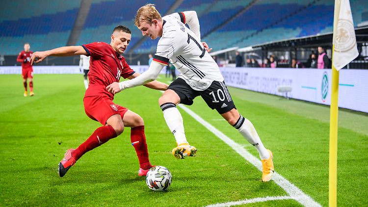 Gegen Tschechien war Brandt zwar bemüht, doch viel Zählbares sprang dabei nicht heraus. Bei seiner Großchance in der 32. Minute nach einem fatalen Fehlpass des Tschechen Vaclav Jemelka drosch Brandt den Ball aus 13 Metern in den Leipziger Nachthimmel. Vorausgegangen war eine gruselige Ballannahme des Edeltechnikers. "So eine Chance muss er nutzen, um nachhaltig Ansprüche anmelden zu können", sagte RTL-Experte Michael Ballack, der genau wie Löw monierte: "Er macht aus seinen Möglichkeiten viel zu wenig."