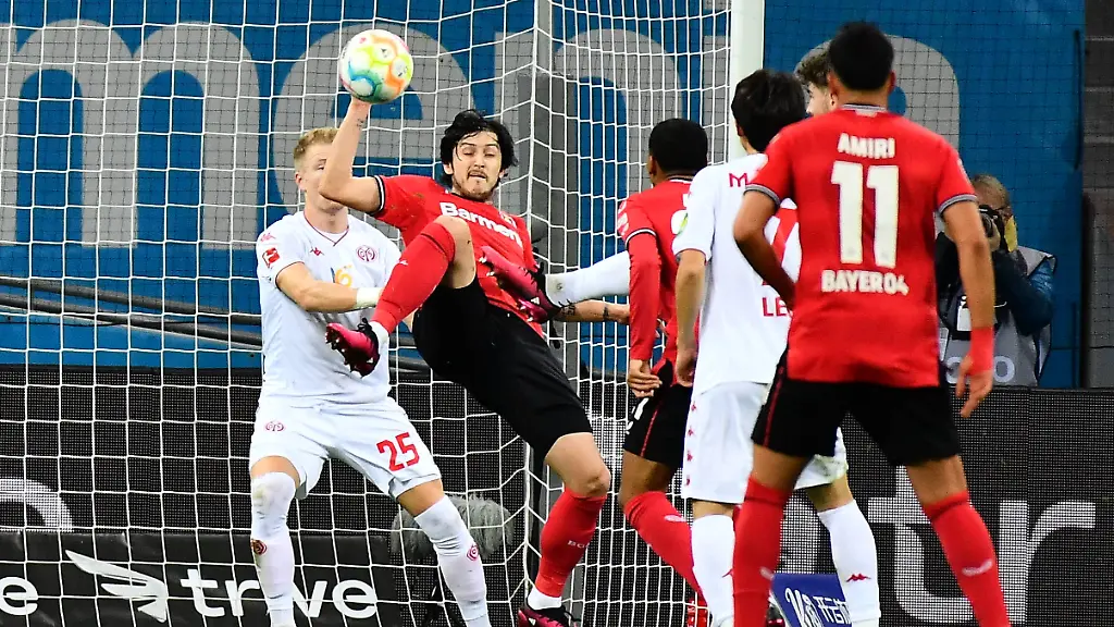 Der Franzose Anthony Caci mit seinem zweiten Bundesliga-Tor (26.) und Leandro Barreiro (45.+4) hatten Mainz zweimal in Führung gebracht, Nadiem Amiri (31.) und Patrik Schick (58.) beim Bundesliga-Comeback nach fast vier Monaten nur 142 Sekunden nach seiner Einwechslung glichen jeweils aus. Ein Foulelfmeter von Marcus Ingvartsen sicherte Mainz, das zuvor acht von zehn Spielen gegen Leverkusen verloren hatte, den fünften Auswärtssieg der Saison (82.). Amine Adli hatte davor wegen einer Notbremse die Rote Karte gesehen.