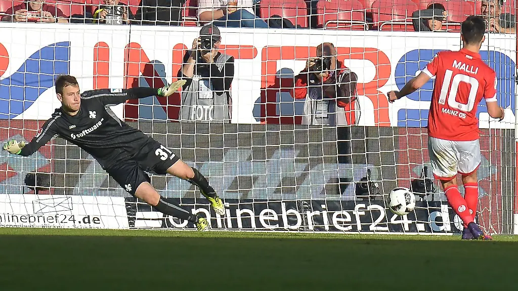 Drei Elfmeter, ein SiegerMainz stößt den Bock und Darmstadt um