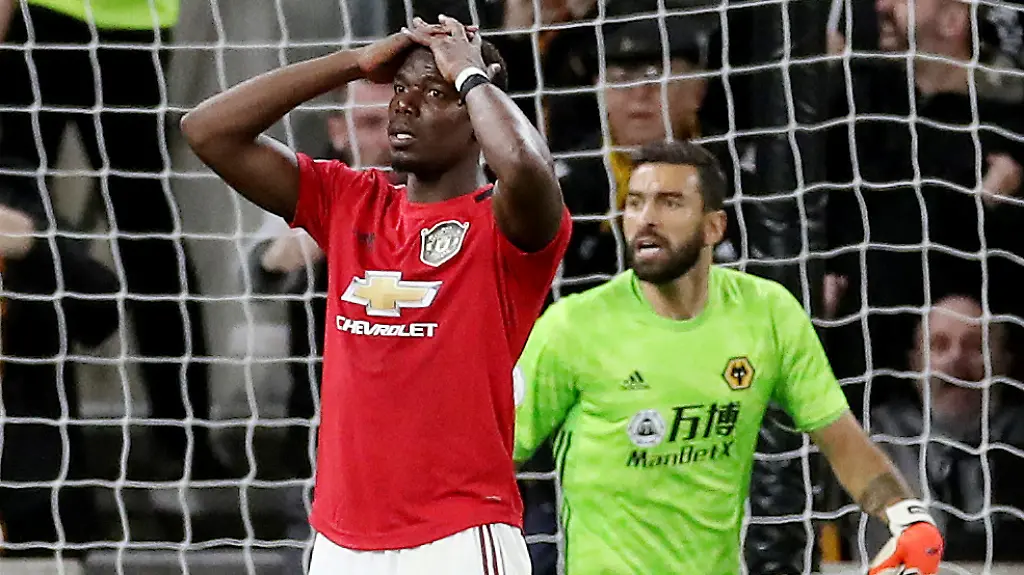 Der französische Fußball-Topstar Paul Pogba hat mit einem verschossenen Foulelfmeter die Chance vertan, mit Manchester United am zweiten Spieltag zum FC Liverpool und zum FC Arsenal an der Spitze der englischen Premier League aufzuschließen. Die Mannschaft von Trainer Ole Gunnar Solskjaer kam bei den Wolverhampton Wanderers vor 31.314 Zuschauern im nicht ganz ausverkauften Molineux-Stadium nur zu einem 1:1 (1:0).