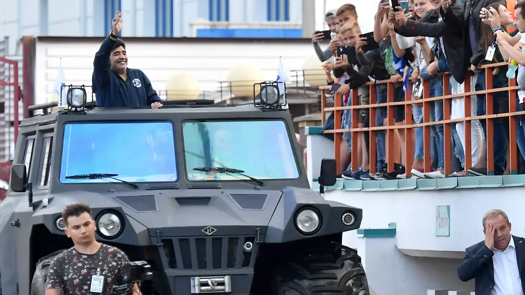 Diego Maradona erhob sich von seinem Sitz, er strahlte und winkte den Massen zu. In einem gigantischen Militär-Jeep ließ er sich nach seiner Ankunft in Brest wie ein Feldherr durchs Dinamo-Stadion fahren. Die Fans des Klubs, dessen neuer Vorstandschef der Superstar von einst nun ist, waren selig. Küsschen hier, Foto da - was für eine Show! Doch als reinen Klamauk will Maradona seinen gut dotierten Job in Europas letzter Diktatur nicht verstanden wissen. Er nehme sein Engagement in Weißrussland "sehr ernst", sagte der 57-Jährige, der hofft, dass der Fußball im Land durch seine Anwesenheit "jeden Tag besser" wird.