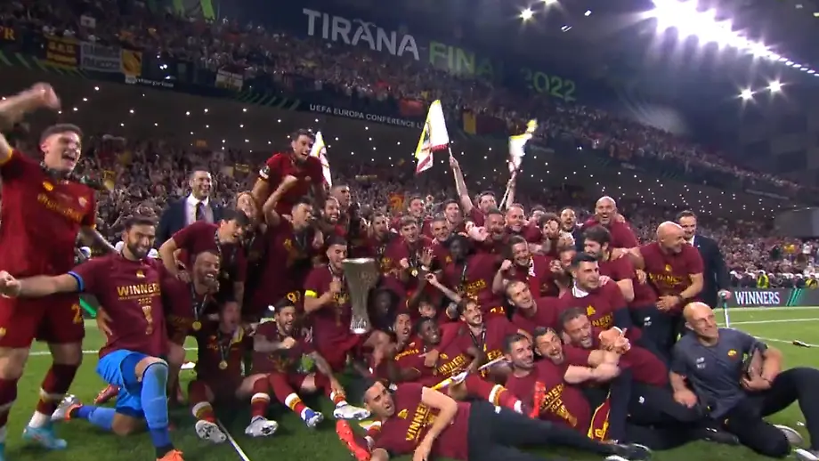 Der zähe 1:0-Endspielsieg der Italiener über Feyenoord Rotterdam wird nicht groß in Erinnerung bleiben - die folgende Titelparty, die direkt auf den Rängen in dem engen Stadion in Albanien sowie in der Heimat begann, aber wohl schon. "Roma ist Champion, das ist alles, was zählt. Es ist unglaublich. Wir haben für die Fans gewonnen", sagte Abwehrspieler Leonardo Spinazzola, nachdem Nicolo Zaniolo dem Team den seit 61 Jahren ersehnten Europapokal-Titel beschert hatte.