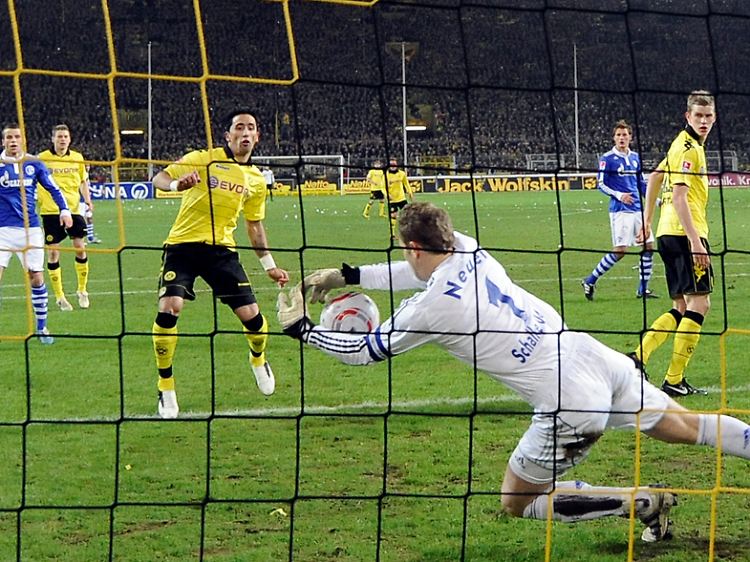 Fünf Tage vor dem Länderspiel gegen Italien an gleicher Stätte entpuppte sich der Schalker Keeper als BVB-Spielverderber. Allein in den ersten sieben Minuten vereitelte er bei drei Großchancen der Borussia durch Mario Götze, Jakub Blaszczykowski und Mats Hummels einen frühen Rückstand der konfusen Königsblauen. Das Werben von Rekordmeister Bayern München um Neuer dürfte sich nach dieser beeindruckenden Vorstellung noch verstärken. TV-Experte Franz Beckenbauer sprach von einer "Weltklasseleistung": "Ohne ihn hätten die Schalker in dieser Saison schon 15 bis 20 Tore mehr kassiert."