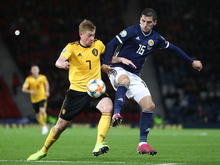 Bestens auf EM-Kurs befindet sich Belgien. Angesichts der perfekten Ausbeute von 18 Punkten aus sechs Spielen kann sich der WM-Dritte nach einem 4:0 (2:0) gegen Schottland in Glasgow zurücklehnen - nur noch theoretisch ist dem überragenden Kevin de Bruyne (ein Tor, drei Torvorlagen) und den anderen Stars die Teilnahme zu nehmen. WM-Gastgeber Russland wird sich in der Gruppe I nach einem 1:0 (0:0) gegen Kasachstan sehr wahrscheinlich den zweiten Startplatz sichern.