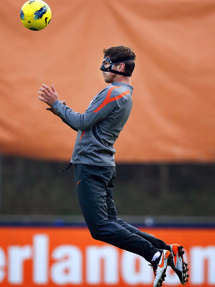 Klaas-Jan Huntelaar war in dieser Saison in Topform. Gegen Deutschland ist er die einzige niederländische Spitze - mit adretter Maske.