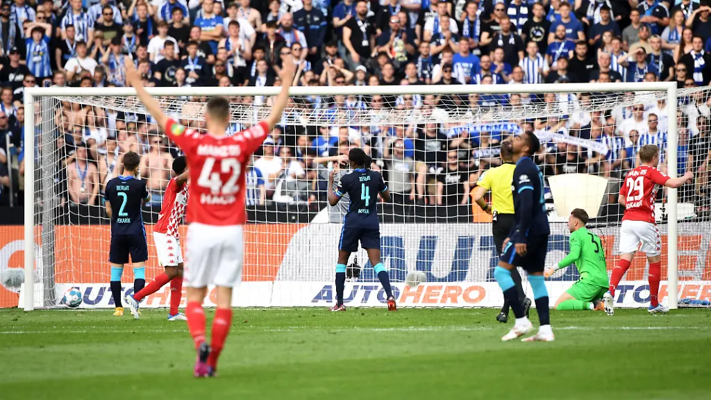 Das Spiel blieb für die Hertha in der zweiten Halbzeit eine reine Nervensache. Dazu gab es einen Aufreger: Ittrich verweigerte ein Mainzer Tor wegen Handspiels von Karim Onisiwo (52.). Lotka rettete bei einem Kopfball von Anton Stach (74.) mit einem prima Reflex. Mainz drängte mehr auf das Siegtor und wurde durch einen Kopfball von Bell belohnt. So wurde die Hertha für ihre Passivität bestraft. Erst danach wachten die Gastgeber noch einmal auf. Luca Wollschläger traf den Pfosten (89.), ein Tor von Selke wurde wegen Foulspiels nicht gegeben (90.+1).