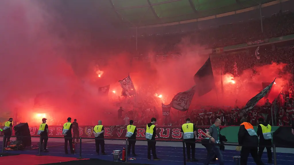 Schiedsrichter Bastian Dankert hatte die Partie vor 74 322 Zuschauern im ausverkauften Olympiastadion kurz nach der Pause für einige Minuten unterbrochen, da dicke Rauchschwaden durch die Arena zogen. Die Fans des Außenseiters aus der Pfalz hatten zwar vor dem Anstoß mit einer Choreografie beeindruckt: Ein riesiger Roter Teufel reichte fast bis unters Stadiondach. Danach brannten die Anhänger der Pfälzer allerdings fast pausenlos verbotene Pyrotechnik ab, später stiegen auch Feuerwerkskörper hoch und Knallkörper explodierten. Auch im Leverkusener Block wurde gezündelt.