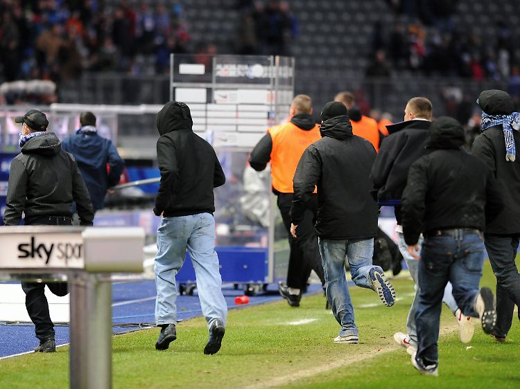 Bis zu 150 Chaoten aus dem Berliner Fanblock hatten nach der Niederlage des Bundesliga-Schlusslichtes Hertha gegen Nürnberg den Graben überwunden und den Innenraum des Olympiastadions gestürmt. Die Nürnberger Profis mussten vor den Randalierern in die Katakomben flüchten. Ordner und Polizisten hinderten die teilweise mit Latten und Fahnenstangen bewaffneten Fans, in den Abgang zu den Spieler-Kabinen vorzudringen. Die Chaoten zerschlugen Plastik- und Glaswände im Bereich der Trainerbänke und zerstörten zahlreiche Stühle.