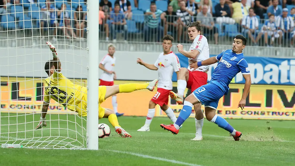 Die erste Großchance hatte der Gastgeber: Baicu rannte freistehend auf Yvon Mvogo zu, doch der Schweizer RB-Keeper blieb cool und parierte glänzend (9.). Danach testete Sabitzer (16./18.) den gegnerischen Torhüter mehrfach, auch Forsberg (22.) scheiterte an Mirko Pigliacelli. Nach einer kurz ausgeführten Ecke flankte Diego Demme den Ball in den Strafraum, Willi Orban legte eher unglücklich ab, ehe Sabitzer aus Kurzdistanz einschoss (39.). Zum Wiederanpfiff brachte Rangnick im Sturm Jean-Kevin Augustin für Cunha, der nach einer Demme-Flanke volley die Chance zum 2:0 (56.) hatte - der Italiener im Craiova-Gehäuse zeigte erneut seine Klasse. Mit Bruma (63.) und Stefan Ilsanker (72.) schöpfte Rangnick sein Wechselkontingent aus und gab Sabitzer und Demme Zeit zum Regenerieren, denn RB absolviert nun ab Sonntag fünf Spiele in 14 Tagen in drei Wettbewerben.