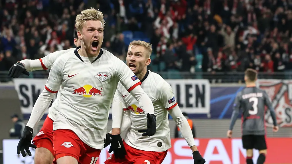 Emil Forsberg drückte das Trikot, durchnässt von Schweiß und von Rasenflecken grün verfärbt, in seinen Händen zusammen. Das Trikot mit der Nummer 10, in dem er RB Leipzig erst per Elfmeter (90.) und dann mit dem Kopf in der sechsten Minute der Nachspielzeit ins Achtelfinale der Champions League befördert hat. Nur zehneinhalb Jahre nach der umstrittenen Gründung des Red-Bull-Klubs und dem Start in der fünften Liga hat es Rasenballsport in die K.-o.-Phase der Champions League geschafft. Der Doppelpack des Schweden binnen sieben Minuten zum 2:2 (0:1) gegen Benfica Lissabon krönte die atemlose Schlussphase eines verrückten Spiels, in dem es lange so aussah, als müssten die Feierlichkeiten vertagt werden. Umso heftiger eruptierten die Emotionen. Der Jubel beim Ausgleich in der neunminütigen (!) Nachspielzeit erinnerte an Naby Keitas Siegtreffer gegen Borussia Dortmund im allerersten Bundesliga-Heimspiel.