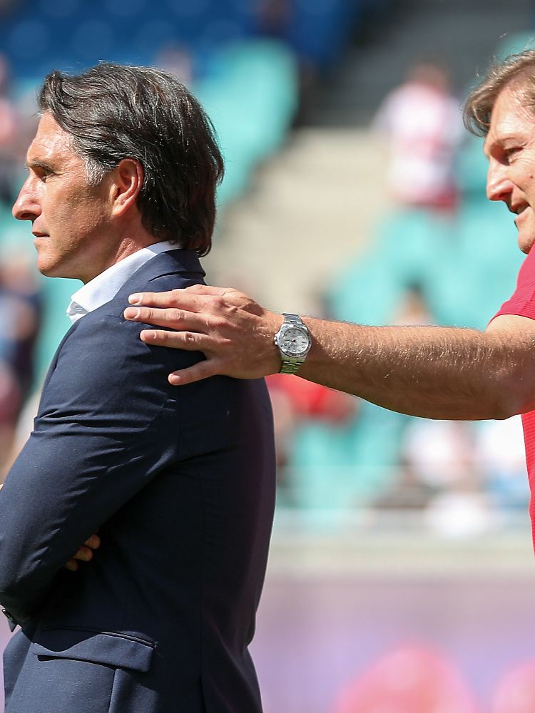 Und RB hat plötzlich sogar wieder Chancen auf die Champions League, kann aber auch die Europaliga noch verspielen. "Wir können rechnerisch immer noch auf einen Champions-League-Platz kommen, wenn Hoffenheim und Leverkusen verlieren. Das mag nicht besonders realistisch klingen, aber es ist auch nicht ausgeschlossen", befeuerte Rangnick. "Das ist immer noch möglich." Leipzigs Vordenker forderte vor dem letzten Saisonspiel bei Hertha BSC: "Wir müssen unsere ganze Konzentration auf das Spiel in Berlin richten und noch einmal alles investieren. Wir müssen gewinnen und trauen uns das auch zu." Und Keeper Gulacsi erinnerte an das verlorene Hinspiel. "Wir haben mit der Hertha noch eine Rechnung offen." Signal an die Konkurrenz: Noch hat RB die Königsklasse nicht aufgegeben.