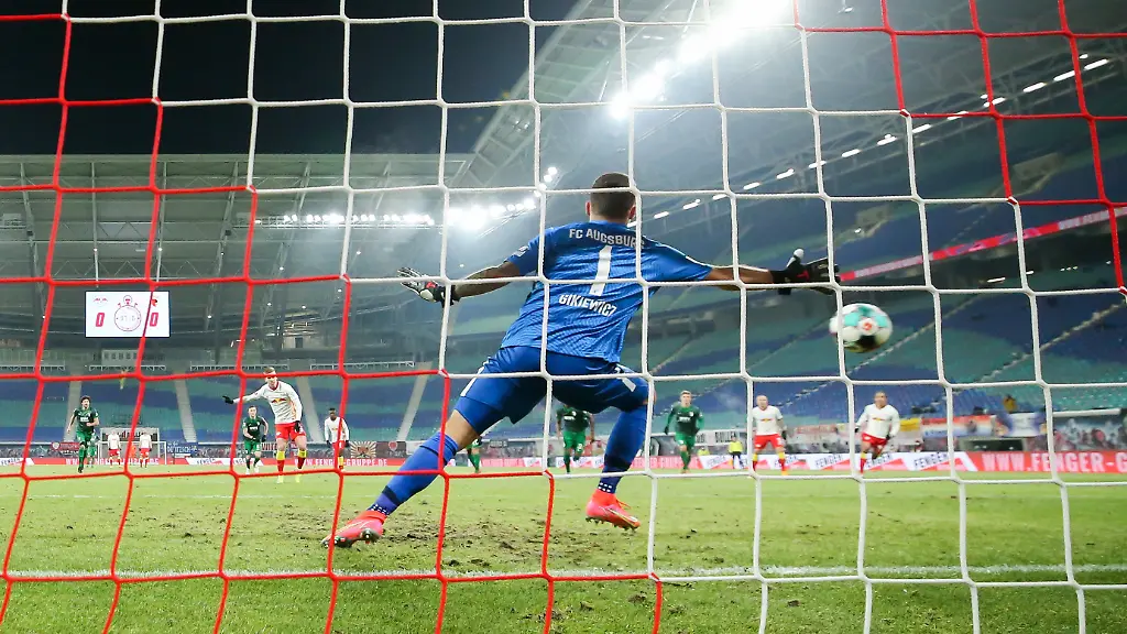 Ein Foulspiel von Reece Oxford an Nordi Mukiele im Augsburger Strafraum hatte in der ersten Halbzeit zum Elfmeter geführt, den Gikiewicz gegen Olmo zunächst hielt. Weil der FCA-Keeper aber zu weit vor die Torlinie ging, wurde der Strafstoß wiederholt - und Olmo ließ sich seine zweite Chance nicht nehmen. Die Leipziger gingen im 21. Saisonspiel zum 16. Mal in Führung. Nkunku erhöhte noch vor der Pause.