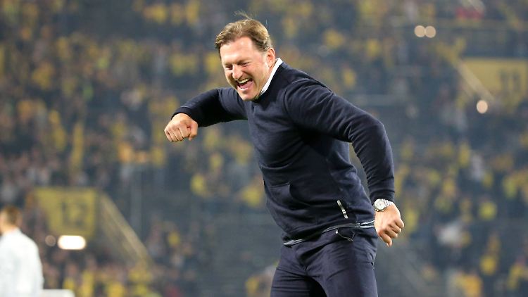 Der Mann war außer Rand und Band: Völlig losgelöst rannte Ralph Hasenhüttl auf das Spielfeld, jubelte, reckte die Faust in den Abendhimmel über Dortmund und umarmte jeden seiner Spieler, dem er habhaft werden konnte. Diesen Sieg, das konnte jeder sehen, ordnete der Trainer von RB Leipzig in die Kategorie "besonders wertvoll" ein. Sein Team hatte das höchst attraktive Spitzenspiel im größten Stadion der Liga gewonnen und dabei eine Klasseleistung gezeigt. Nicht nur das, die zuvor mehr als eineinhalb Jahre uneinnehmbare Dortmunder Festung ist mal wieder gefallen. Der Österreicher sprach von einem "Ausrufezeichen für uns, dass wir ohne Werner und Forsberg spielen und trotzdem eine solch schlagkräftige Truppe auf den Platz bekommen".