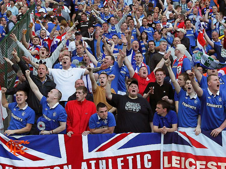 Am Sonntag stehen sie immerhin als Zweitligist im Ligapokal-Halbfinale - gegen Celtic! Deren Fans sagen: Rutscht uns doch den Buckel runter. "Verrottet in der Hölle!", haben sie den Rangers auf einem Grabstein-Banner damals nachgerufen und: "Eure Enkel werden Celtic-Fans sein!" Der Wiederempfang ist ähnlich eisig. "Der Begriff Old Firm ist mit der Liquidierung der Rangers vor drei Jahren gestorben", schrieben einige Anhänger der "Bhoys" den Rangers-Fans in einer riesigen 3000-Pfund-Anzeige im "Sunday Herald", "und wir sehen das Spiel als erstes Duell mit diesem unterklassigen Klub an, der im Ibrox Park spielt".