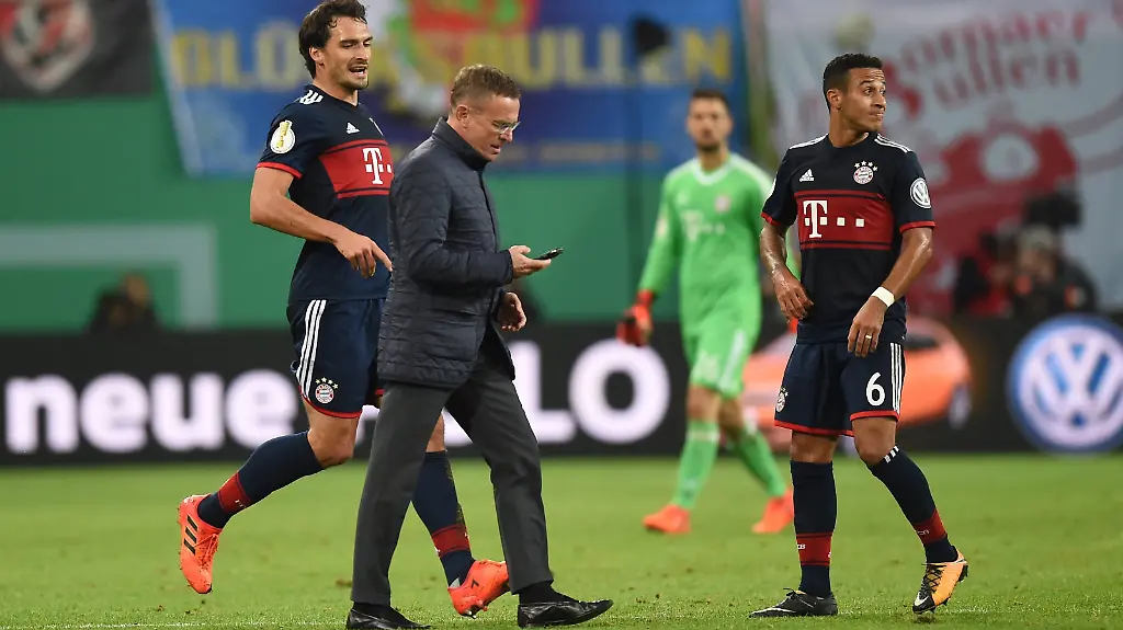 Rangnick war unmittelbar nach dem Pausenpfiff in der Red Bull Arena mit seinem Smartphone auf den Platz gestürmt, offensichtlich um den Schiedsrichtern eine höchst umstrittene Szene noch einmal zu zeigen. Referee Felix Zwayer hatte einen Elfmeter-Pfiff wieder zurückgenommen und auf Freistoß für Leipzig entschieden. "Es geht nicht, dass er mit dem Handy zum Schiedsrichter geht, um ihm Szenen zu zeigen", sagte Bayerns Mats Hummels zu Rangnicks Auftreten.