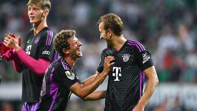 Mit einem breiten Lächeln klatschte Harry Kane mit seinen Mitspielern ab. Gemeinsam ging es dann in die Kurve zu den mitgereisten Fans. Auch dank des Traumeinstands von Topstar Harry Kane ist Meister FC Bayern standesgemäß in die neue Saison gestartet. Die im Supercup noch enttäuschenden Münchner gewannen zum Auftakt der Fußball-Bundesliga bei Werder Bremen mit 4:0 (1:0). Nicht einmal eine Woche nach seiner Verpflichtung und der Einwechslung beim 0:3 gegen RB Leipzig gab Kane die Vorlage für das Führungstor durch den deutschen Nationalspieler Leroy Sané (4.) und erzielte in der 74. Minute seinen ersten Treffer. Wieder Sané (90.) und der eingewechselte Mathys Tel (90.+4) erhöhten.