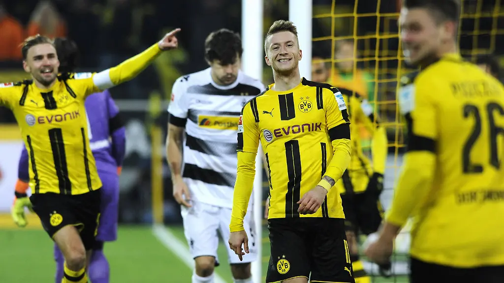 Krise, welche Krise? Nach der Frankfurter Defizit-Ohrfeige für sein Team verteilt BVB-Trainer Thomas Tuchel nun Komplimente. Grund bietet Borussia Dortmund dafür gegen Gladbach reichlich. Überragend: Marco Reus als Teil eines neuen Zauberdreiecks.