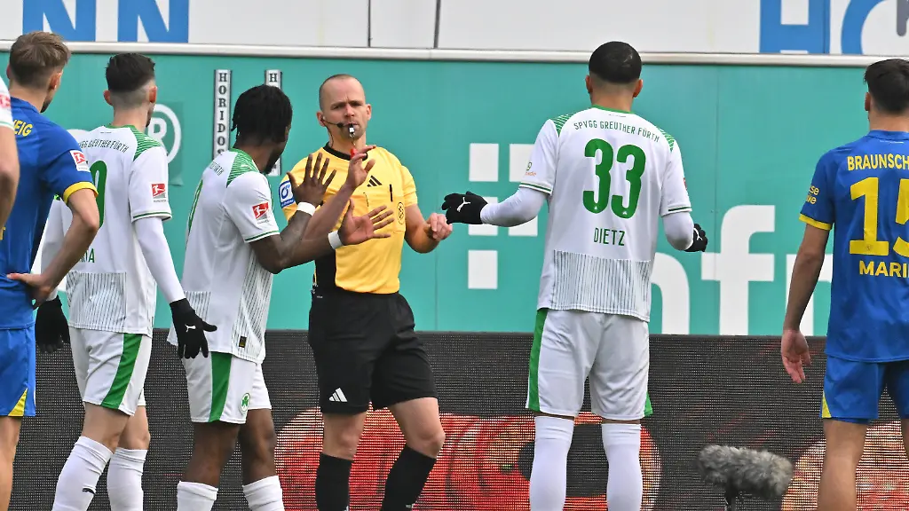 Die SpVgg Greuther Fürth hat sich trotz fast 90-minütiger Unterzahl einen Punkt erkämpft. Die abstiegsbedrohten Franken holten ein 0:0 gegen Eintracht Braunschweig - obwohl sie nach einem zu harten Einsteigen von Maximilian Dietz nach nur 50 Sekunden zu zehnt spielen mussten. Der Innenverteidiger sah nach Studium der Videobilder Rot (3.).