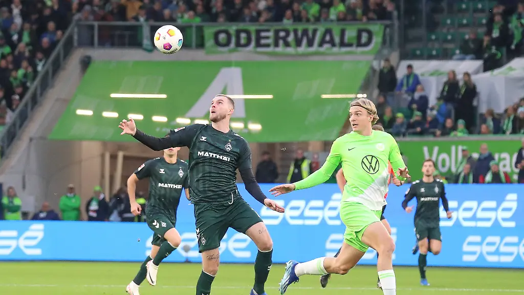 Marvin Ducksch per traumhaftem Freistoß (7.) und Rafael Borre (65.) trafen für Werder, das sich für eine starke Leistung nur teilweise belohnte - und auch eine Schlussphase in Überzahl nicht zum Sieg nutzen konnte: Wolfsburgs Verteidiger Maxence Lacroix sah wegen wiederholten Foulspiels Gelb-Rot (88.). Vaclav Cerny (37.) und Kevin Paredes (59.) hatten zuvor schon mit ihren Toren etwas glücklich die vierte Wolfsburger Liga-Niederlage in Folge verhindert. Dennoch bleibt der VfL als Neunter im Tabellenmittelfeld hängen.