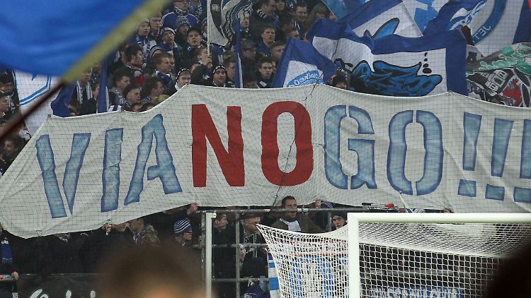 Schalkes Fans zeigen in der VeltinsArena in Gelsenkirchen ihren Unmut.