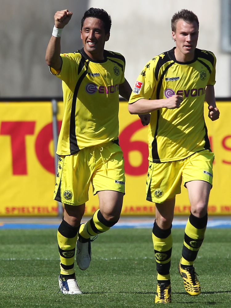 Borussia Dortmund liegt nach dem 3:2 beim 1. FC Nürnberg als Fünfter mit einem Punkt Rückstand auf Bremen und Leverkusen weiter aussichtsreich im Kampf um einen Platz in der europäischen Königsklasse. Mit seinen Saisontoren 16 bis 18 brachte Lucas Barrios (27./62./77.) die zuletzt zweimal sieglosen Westfalen auf Erfolgskurs zurück. Mike Frantz (30.) und Christian Eigler (84.) trafen für den "Club", der trotz der dritten Niederlage nacheinander Tabellenrang 14 behielt.