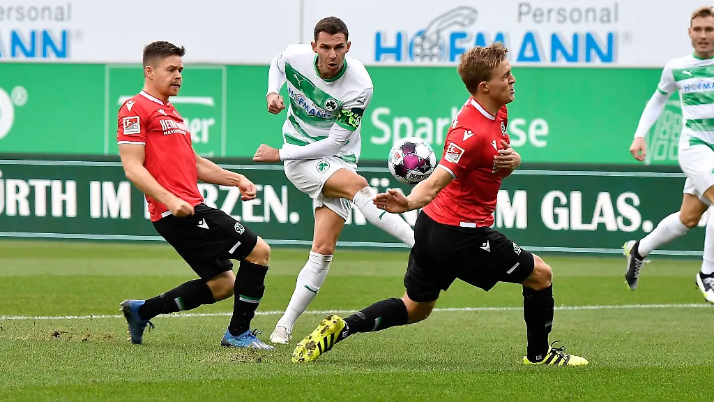 Hannover 96 hat seine schwarze Auswärtsserie in der 2. Fußball-Bundesliga fortgesetzt, die SpVgg Greuther Fürth ihren monatelangen Heimfluch dagegen beenden können: Das Kleeblatt gewann nach einer überzeugenden Vorstellung gegen die indisponierten Niedersachsen verdient mit 4:1 (2:0) und holte den ersten Sieg im Ronhof seit über acht Monaten. Für 96 war es saisonübergreifend die sechste Auswärtspleite in Folge und ein weiterer Dämpfer im Aufstiegsrennen.