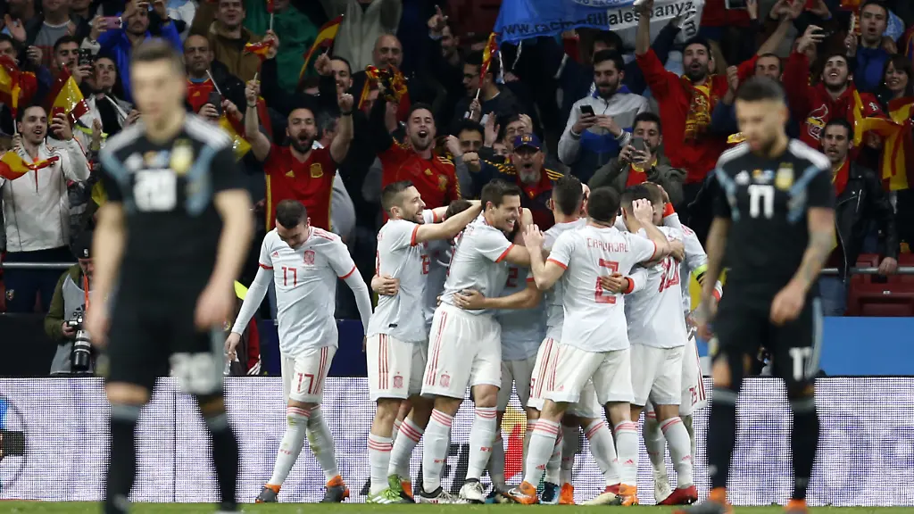 Vier Tage nach dem 1:1 gegen Deutschland feierte Spanien einen deutlichen 6:1 (2:1)-Sieg gegen Argentinien. Stürmer Diego Costa (12. Minute), Isco (27./52./74.), Bayern-Profi Thiago (55.) und Iago Aspas (73.) erzielten die Tore für die Iberer. Den vor allem defensiv komplett enttäuschenden Südamerikanern gelang ohne Superstar Lionel Messi durch Nicolas Otamendi nur das zwischenzeitliche 1:2 (39.).