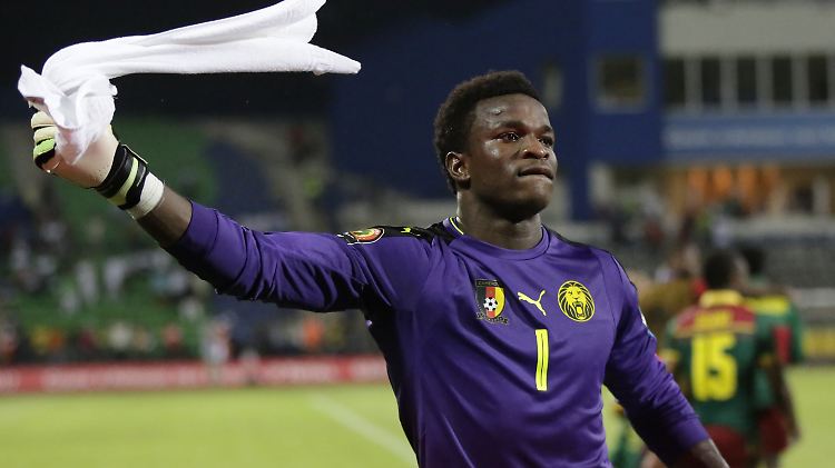 Kameruns Torwart Joseph Ondoa Ebogo jubelt über den Sieg seines Teams im Halbfinal-Spiel gegen Ghana.
