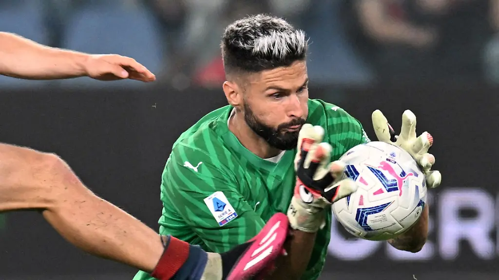 Frankreichs Fußball-Nationalstürmer Olivier Giroud kann nicht nur Tore schießen, sondern auch Treffer verhindern. In der Partie gegen den CFC Genua sprang der 37-Jährige in der Schlussphase beim 1:0-Erfolg seines AC Mailand als Torwart ein. Schlussmann Mike Maignan hatte in der 90.+9. Minute die Rote Karte gesehen und das Auswechselkontingent war erschöpft.