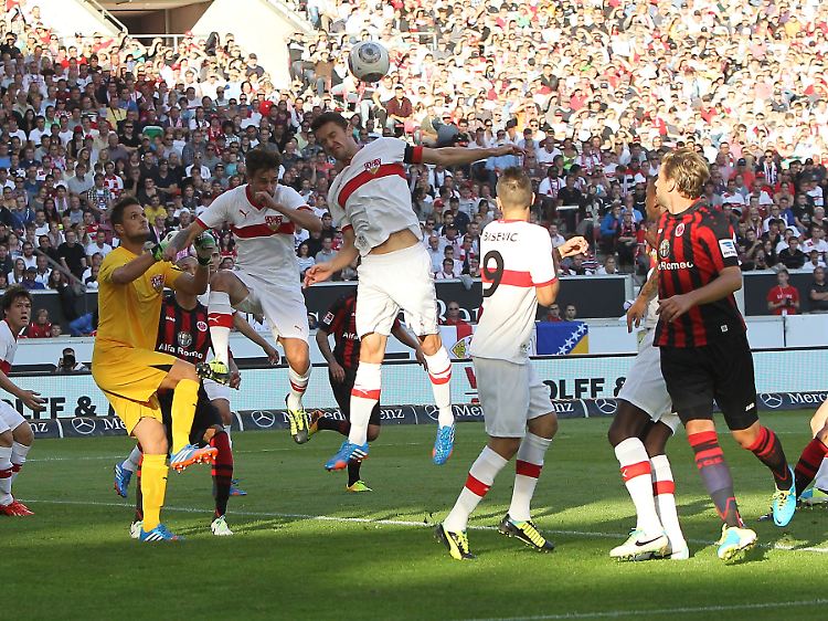 Der VfB Stuttgart und Eintracht Frankfurt bleiben in der Fußball-Bundesliga Mittelmaß. Drei Tage nach ihrem fulminanten Europacup-Comeback bremsten die Hessen durch das 1:1 (1:1) den Aufwärtstrend der Schwaben unter ihrem neuen Trainer Thomas Schneider, der zuvor beide Liga-Spiele seiner jungen Amtszeit gewonnen hatte. Marco Russ brachte die Gäste vor 44.810 Zuschauern in der 14. Minute in Führung. Timo Werner (16.) sorgte als jüngster Torschütze der Stuttgarter Bundesliga-Geschichte im Alter von 17 Jahren und 200 Tagen für das Remis. In der Nachspielzeit vergab Vedad Ibisevic mit einem verschossenen Foul-Elfmeter den Sieg für die Gastgeber. Der VfB ist damit nun Zwölfter, die Eintracht rangiert weiter auf Platz 13.