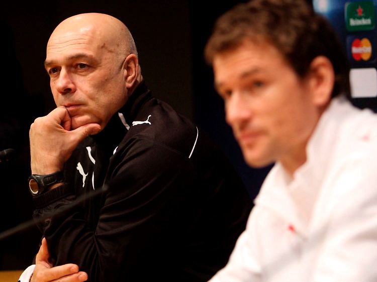 VfB-Trainer Christian Gross mit Torhüter Jens Lehmann. Bei einem 1:1 gäbe es Verlängerung. Bringt die keine Entscheidung, hängt alles an Lehmann.