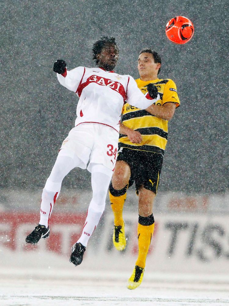 Die Schweizer kamen mit den widrigen Bedingungen besser zurecht. Bereits in der dritten Minute traf Senad Lulic die Latte, Degens Führungstor war nur die verdiente Folge des deutlich schnörkelloseren und griffigeren Berner Spiels. Degen traf auf seinen Zwillingsbruder Phillip auf VfB-Seite und war das auffälligere Familienmitglied.