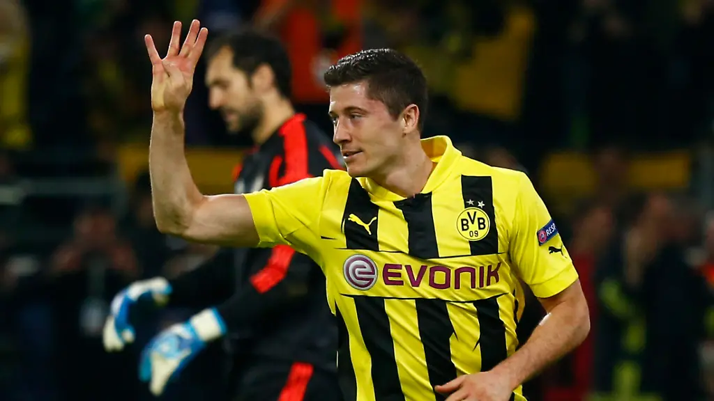 Nicht nur hinterher bei den Interviews, als die polnische Sphinx alle Fragen n ach einem Wechsel zum FC Bayern mit undurchdringlicher Miene weglächelte und lediglich sagte: "Ich sage gar nichts." Sondern vor allem bei seinen Toren. Mittwochslotto mit Robert. Die Glückszahlen: 8, 50, 55, 67. Vier Volltreffer. Bei einem Gegentor von Madrids Cristiano Ronaldo zwei Minuten vor der Pause ergab das einen 4:1-Sieg. Der lässt es nach dieser wundersamen Fußballwoche durchaus realistisch erscheinen, dass sich im Endspiel am 25. Mai im Londoner Wembleystadion zwei deutsche Mannschaften gegenüberstehen, nachdem die Bayern am Dienstagabend den FC Barcelona mit 4:0 demontiert hatten.