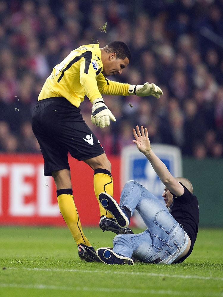 Die Achtelfinalpartie zwischen Ajax Amsterdam und AZ Alkmaar im niederländischen Fußballpokal 2011/2012 wird in unrühmlicher Erinnerung bleiben: 36 Minuten sind absolviert, Amsterdam führt 1:0, als plötzlich ein 19-jähriger Ajax-Fan den Platz stürmt. Der Versuch des Mannes, Alkmaar-Keeper Esteban Alvarado zu treten, misslingt zwar. Die Situation eskaliert dennoch, denn der Torwart belässt es nicht dabei, den Angreifer seinerseits mit einem Kungfu-Tritt niederzustrecken. Im Gegenteil: Als der Mann schon am Boden liegt, tritt Alkmaars Keeper erneut mit voller Wucht auf ihn ein. Ordner und Mitspieler müssen den Keeper von weiteren Tritten abhalten.