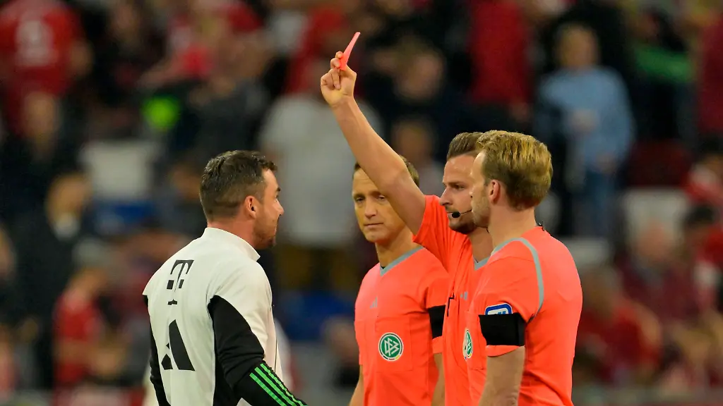 Laut Schlager ging es jedoch bei der Szene gar "nicht um eine Beleidigung, sondern um die konfrontative Art, mit der Zsolt Löw auf mich zugestürmt ist. Das ist nach Regelwerk eine Rote Karte." Warum? "Wir haben hier auch dem Amateurfußball gegenüber eine Vorbildfunktion." Der Unparteiische brachte die Bayern vor allem mit zwei Entscheidungen gegen sich auf. Vor dem Freistoß zum 1:1 durch Alejandro Grimaldo (24.) fühlte sich Thomas Müller gefoult, nicht umgekehrt. Und das Vergehen von Alphonso Davies, der vor dem Elfmeter zum 2:2 (90.+4) Jonas Hofmann zu Fall gebracht hatte, fand nicht nur Tuchel "supersoft".