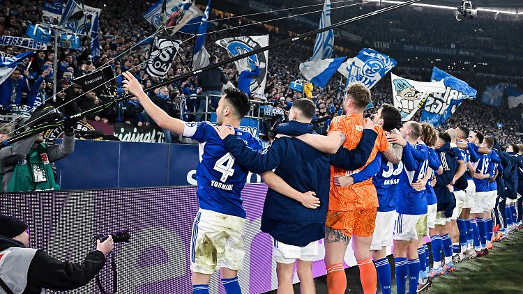 Aber schön halblang. Trainer Thomas Reis, der sich die Party zwischen staunender Mannschaft und ekstatischem Publikum aus der Ferne ansah wie ein zufriedener Zeremonienmeister, trat nach den Feierlichkeiten tüchtig auf die Bremse. "Natürlich genießen wir das Feiern mit den Fans, wenn man sieht, wie das Unentschieden zustande gekommen ist. Aber wir müssen auf dem Boden der Tatsachen bleiben, wir wissen, dass wir noch einige Zähler holen müssen." Mit 20 Punkten ist Schalke Vorletzter. Sollte der TSG Hoffenheim morgen die Sensation beim SC Freiburg gelingen, wäre Königsblau wieder Schlusslicht. Aber weiter mittendrin. "Der BVB war uns fußballerisch überlegen, das müssen wir anerkennen", so Reis. "Wenn du aber so zurückkommst, dann genießt du das." Und das vor den Augen von Legenden wie Emile Mpenza, Klaas-Jan Huntelaar, René Eijkelkamp und "Wetten dass ...?"-Erfinder Frank Elstner. Und wer hätte schon gewettet, dass das hier gut geht für Schalke?