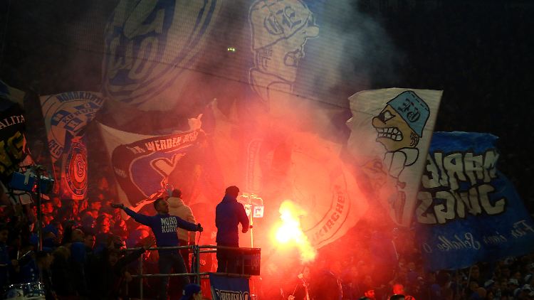 Blauer Rauch auf Schalke.