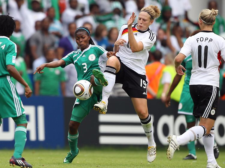 Nigeria, erste afrikanische Frauen-Mannschaft im Finale eines FIFA-Turniers, setzte nach dem Rückstand vor allem auf Konter und athletische Präsenz, die DFB-Auswahl hielt bei hohem Tempo mit diszipliniertem Pressing und agilem Spielaufbau dagegen. Nachdem Kulig (19.) per direktem 30-Meter-Freistoß knapp über das Tor schoss, wurde DFB-Torfrau Almuth Schult erstmals geprüft: Ebere Orji (28.) zog aus spitzem Winkel ab, die Schlussfrau vom Magdeburger FFC lenkte den Ball aber über die Querlatte.