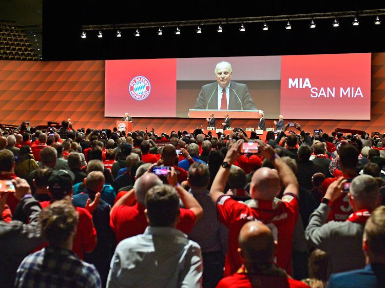 Ohne die Mitglieder und deren überwältigende Unterstützung, das betonte Hoeneß am Freitagabend gleich zu Beginn in der Münchner Olympiahalle, wäre er nach seiner Zeit im Gefängnis nicht mehr an die Spitze seines Herzensklubs zurückgekehrt. "Sie haben mir wunderbare Jahre geschenkt", sagte der Vereinspatron. Sein zum Nachfolger erkorener Freund Herbert Hainer konnte da einmal mehr fühlen, welchen "riesigen Fußspuren" er folgt.
