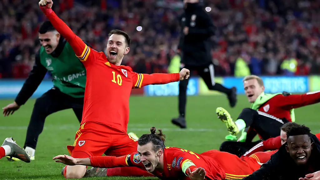 Der 2:0 (1:0)-Erfolg der Slowaken gegen Aserbaidschan blieb unterdessen für die Direktqualifikation bedeutungslos. Doch das Team der Berliner Peter Pekarik und Ondrej Duda, das durch ein gleichzeitiges Remis in Cardiff noch Gruppenzweiter geworden wäre, kann noch über die Play-offs zum EM-Teilnehmer avancieren. Wales setzte im "Endspiel" um Platz zwei gegen Ungarn in Cardiff früh ein Zeichen. Die 1:0-Führung der Briten durch Mittelfeldspieler Aaron Ramsey (15.) stellte für die Gastgeber die Weichen zur zweiten Teilnahme an einem EM-Turnier in Folge. Der Kollege von Nationalspieler Emre Can und Ex-Weltmeister Sami Khedira bei Juventus Turin schockte die Gäste nur 120 Sekunden nach der Pause mit seinem zweiten Treffer und sorgte damit zugleich auch schon für die Entscheidung.