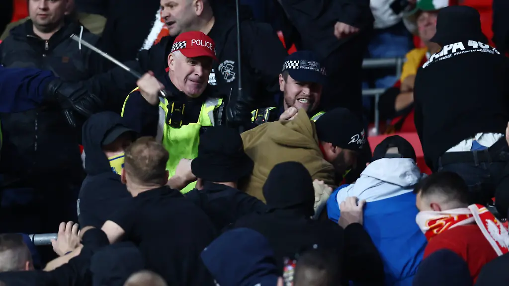 Auf den Rängen des Wembleystadions prügeln sich ungarische Fans mit der englischen Polizei. Ungarns Fußballverband reagiert schnell auf die Gewalt beim WM-Qualifikationsspiel. Eine finale Lösung der Probleme mit den Hooligans dürfte das jedoch nicht sein.