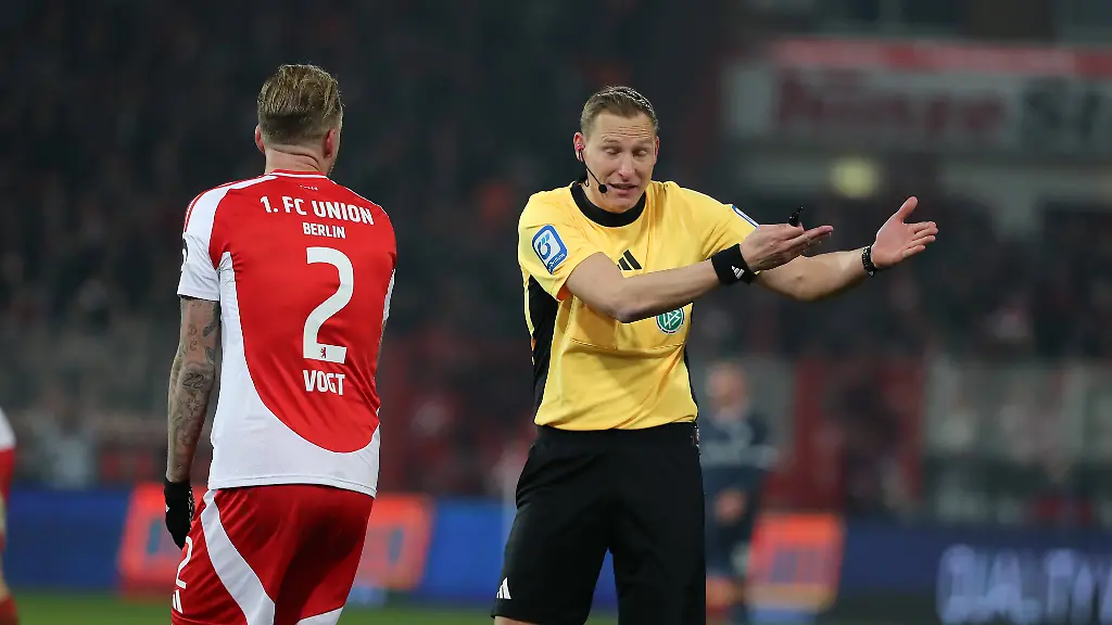 Schiedsrichter Martin Petersen hat während des Bundesliga-Skandalspiels zwischen Union Berlin und dem VfL Bochum am Samstag (1:1) richtig und stringent gehandelt. Zu diesem Schluss kommt der Deutsche Fußball-Bund. "Aus unserer Sicht waren seine Entscheidungen rund um den Vorfall korrekt", teilte der DFB mit. VfL-Torhüter Patrick Drewes war in der Nachspielzeit von einem Feuerzeug am Kopf getroffen worden. Das Spiel war in der Folge für 25 Minuten unterbrochen, ehe Petersen es ohne Drewes fortsetzen ließ.
