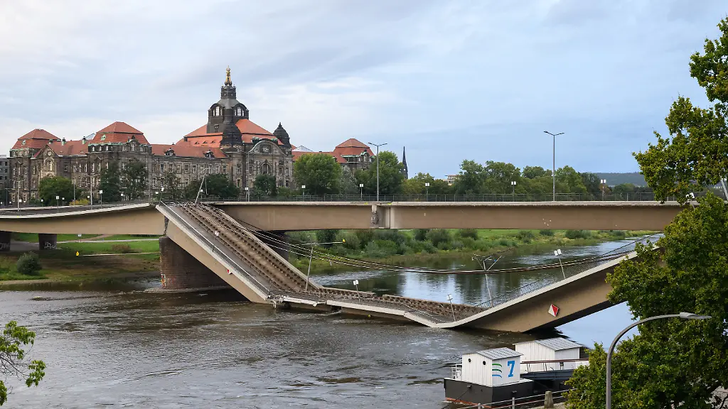 Am frühen Mittwochmorgen war in Dresden ein Teil der über die Elbe führenden Carolabrücke eingestürzt. Dabei wurde niemand verletzt. Am Freitag war im Zuge von Abrissarbeiten ein weiterer Abschnitt eingebrochen. Die Abriss- und Räumungsarbeiten sollen auf der Neustädter Seite bis zum Abend abgeschlossen sein. Das kündigte Feuerwehrsprecher Michael Klahre am Mittag an. Der Abschluss kommt rechtzeitig zum nun bereits für Sonntagvormittag erwarteten Pegelstand von vier Metern an der Elbe in Dresden. Bei dieser Höhe wird Alarmstufe 1 ausgerufen, erläuterte der Leiter des Dresdner Umweltamtes, René Herold. Der normale Pegelwert liegt bei rund zwei Metern.
