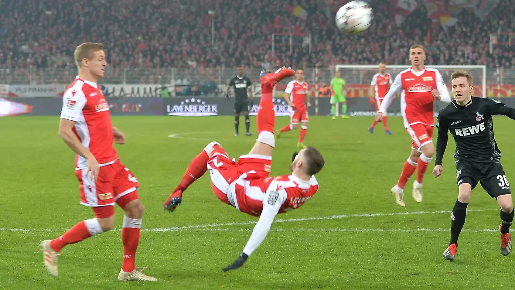 Vor 22.012 Zuschauern im ausverkauften Stadion "An der Alten Försterei" blieben die Kölner in den Startlöchern sitzen. Nach Vorarbeit von Suleiman Abdullahi war Marcel Hartel völlig frei und versenkte den Ball nach 25 Sekunden per Fallrückzieher zum 1:0 für die Gastgeber. Verteidiger Florian Hübner legte per Kopf nach Freistoß-Flanke von Kapitän Christopher Trimmel zum 2:0 nach (30. Minute). r